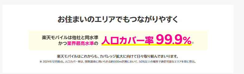 人口カバー率99.9%は、他社キャリア比較しても遜色ありません。