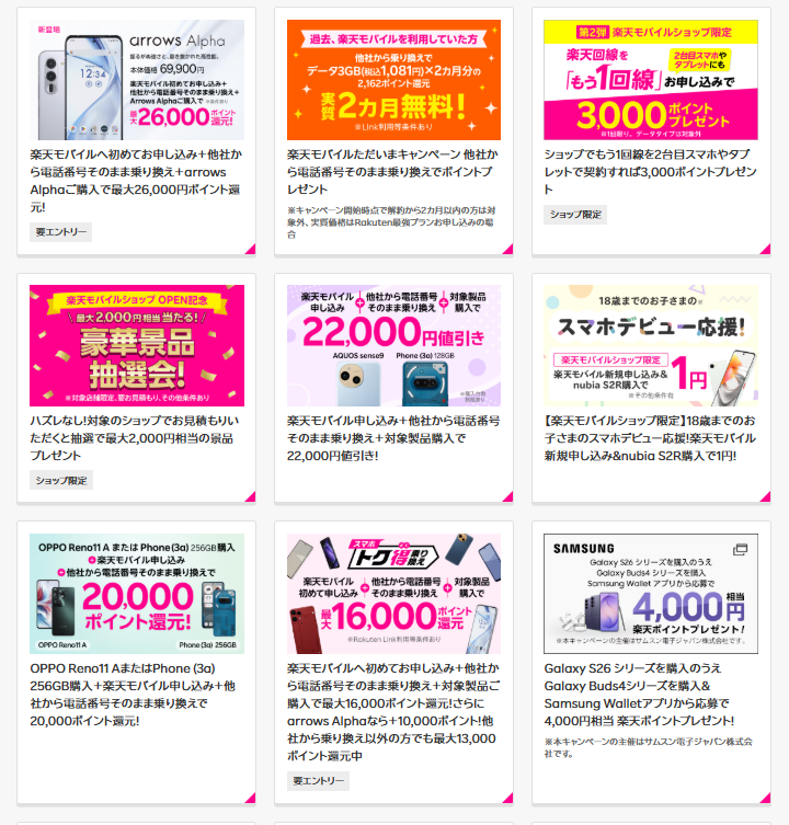 2026年4月11日現在 今おすすめの楽天モバイルキャペーンまとめ【超最新】