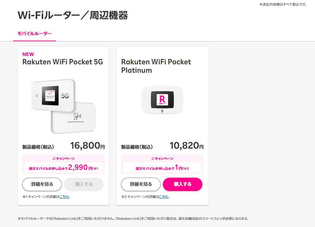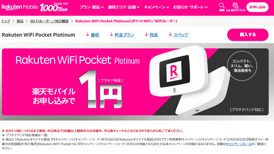 ・Rakuten WiFi Pocket Platinum割引後1円!