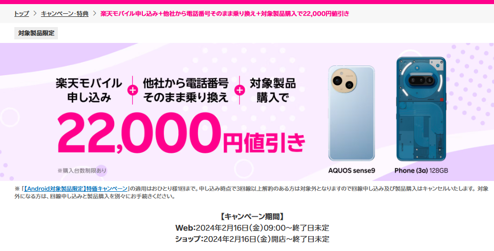 • AQUOS sense9 ・・22,000円値引き