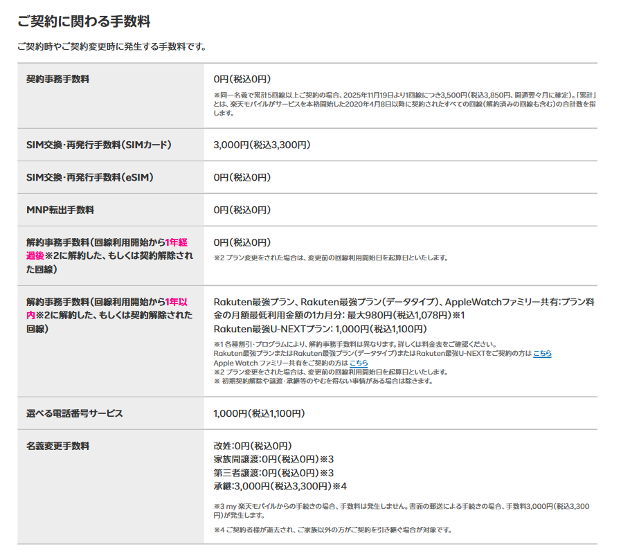 頻繁な契約や解約に対する手数料は取られますがそうでない場合、楽天モバイルは基本手数料無料なのでいいですよね。