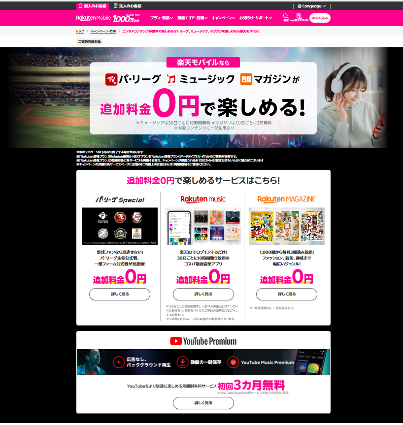 • パ・リーグが追加料金0円で楽しめる