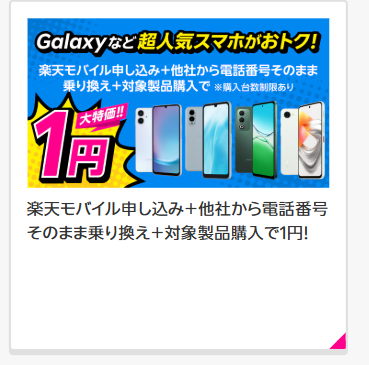 現在以下が楽天モバイル申し込み+他社から乗り換えで製品価格1円で購入可能